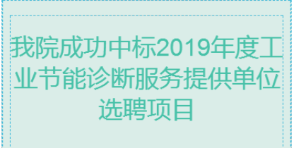 2019年8月29日,在工信部節(jié)能與綜合利用司組織的《2019年度工業(yè)節(jié)能診斷服務(wù)提供單位選聘項目》招標中,經(jīng)評標委員會認真評定,我院以良好的信譽、豐富的業(yè)績經(jīng)驗、優(yōu)秀的投標方案贏得肯定,順利中標。
